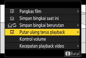 Tekan tombol i, sorot [Putar ulang terus playback] dan tekan 2.