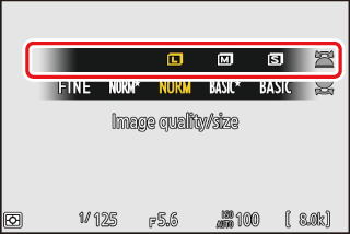 Scegli una dimensione per le nuove immagini JPEG. Il formato per le immagini JPEG può essere selezionato tra [ ], [ ] e [ ].