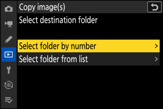 Evidenziare la cartella contenente le immagini da copiare e premere 2 per visualizzare il menu [ ].