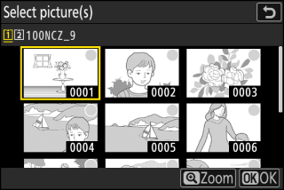 Per scegliere un'immagine diversa, premere il pulsante W ( Q ). Evidenziare l'immagine desiderata e premere J per selezionarla come immagine di riferimento.