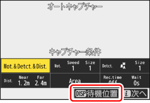 オートキャプチャー撮影実行直前の設定確認画面でDISPボタンを押すと、[撮影後のフォーカス位置リセット]の設定が行えるようになりました。オートキャプチャー撮影実行中に撮影待機状態になった場合に、ピント位置(フォーカス位置)をリセットするかどうかを選べます。