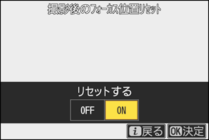 | [リセットしない] | 撮影待機状態になる直前のピント位置を保持します。 |