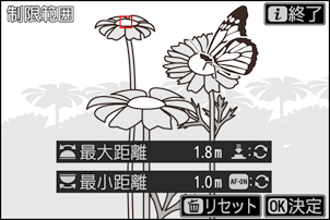 - 制限範囲設定画面にフォーカス指標ポイントが表示されます。