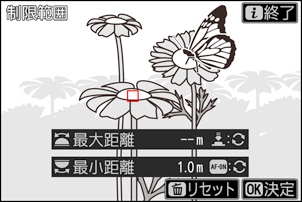 ピントを合わせる範囲の至近側の距離と無限遠側の距離を設定します。