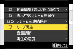 動画再生時のiメニュー項目に[ループ再生]が追加