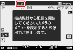 - 静止画/動画セレクターの設定にかかわらず、動画モードの撮影画面が表示されます。ホワイトバランスやピクチャーコントロールなどの設定は、動画モード時の設定がストリーミング映像に反映されます。
