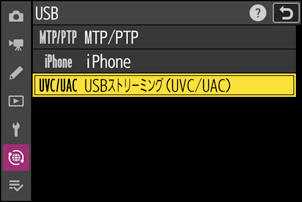 - ネットワークメニュー[USB]を[USBストリーミング(UVC/UAC)]以外に設定したとき