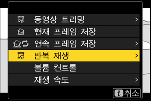 추가 동영상 재생 i 메뉴 항목: “반복 재생”