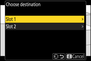 Jeśli włożona jest tylko jedna karta pamięci, nie pojawi się monit o wybranie gniazda.