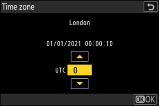 Evidențiați un fus orar în afișajul [ ] și apăsați J