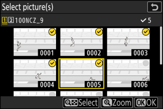 Pentru a selecta imaginea evidențiată, apăsați butonul W ( Q ). Imaginile selectate sunt marcate cu o bifă (