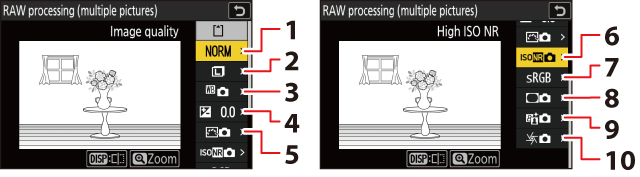 Procesarea RAW este disponibilă numai cu imaginile NEF (RAW) create cu această cameră. Imaginile în alte formate și fotografiile NEF (RAW) realizate cu alte camere, Camera Control Pro 2 sau NX Tether nu pot fi selectate.