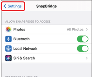 Dispozitiv inteligent: După ajustarea setărilor dispozitivului, așa cum este descris în Pasul 4, reveniți la aplicația SnapBridge.
