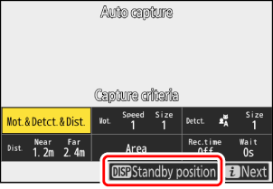 [ Nu resetați ] Camera menține poziția de focalizare activă înainte de a intra în modul standby pentru captura automată.