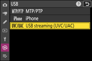 - [ USB ] v omrežnem meniju se spremeni iz [ Pretakanje USB ( UVC/UAC ) ],