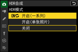 选择[]可保存用于创建HDR照片的单张照片;所拍照片以NEF(RAW)格式保存。