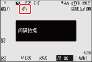 间隔拍摄期间将在控制面板显示一个7图标。若[]选为