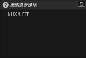 • 將游標置於 [連接至 FTP 伺服器] 中的網路配置檔案並按下 WQ可顯示其描述性文字。