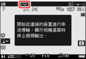 - 相機將進入直播待機模式,在拍攝顯示中將顯示一條提示您開始直播的資訊和一個 u 圖示。