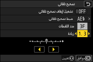 - تتيح برامج التصحيح التي يبلغ حجم الزيادة فيها 2.0 EV أو أكثر تصحيح 5 لقطات بحد أقصى.
