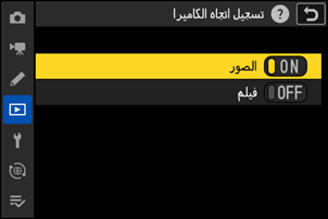 إعدادات "تسجيل اتجاه الكاميرا" المنفصلة متاحة للصور ومقاطع الفيلم في قائمة العرض
