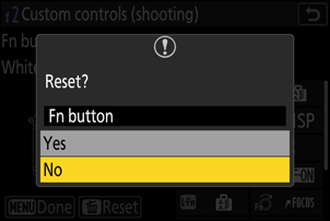 Du kan nu nulstille valgte kontroller til deres standardroller i kontrolvalgsdisplayene for brugerdefinerede indstillinger f2 [ Brugerdefinerede kontroller (optagelse) ] og g2 [ Brugerdefinerede kontroller ].