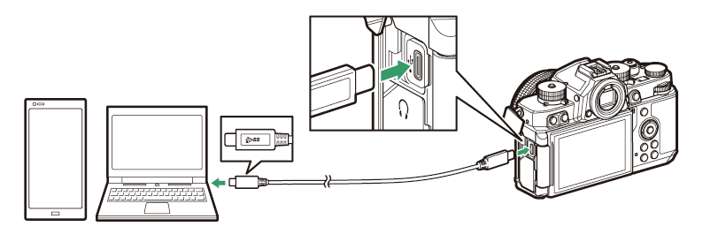 Tilslut kameraet og computeren/smartenheden ved hjælp af det medfølgende USB kabel.
