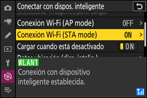 Dispositivo inteligente: Después de configurar los ajustes del dispositivo tal y como se ha descrito en el paso 4, regrese a la aplicación SnapBridge.