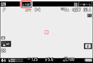 - A videó mód felvételi kijelzője a fénykép/videó választó beállításától függetlenül megjelenik. A videó mód beállításai, beleértve a fehéregyensúlyt és Picture Control érvényesek lesznek a közvetített képre.