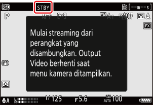 - Tampilan pemotretan mode film akan muncul terlepas dari pengaturan selektor foto/film. Pengaturan mode film termasuk keseimbangan putih dan Picture Control akan diterapkan ke gambar streaming.