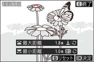 Oボタンを押すと、[最小距離]と[最大距離]の設定値がリセットされます。