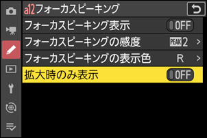 カスタムメニューa12[フォーカスピーキング]に[拡大時のみ表示]が追加