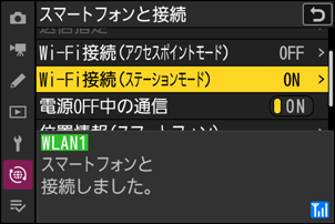 - 「Wi-Fiステーションモード」および「Wi-Fiアクセスポイントモード」で接続するためには、対応したSnapBridgeアプリが必要です。SnapBridgeは最新のバージョンをお使いください。
