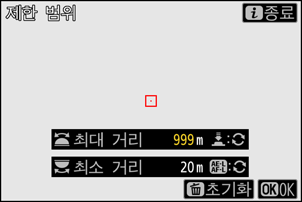 [최소 거리] 및 [최대 거리]에 설정된 값을 초기화하려면 O 버튼을 누릅니다.