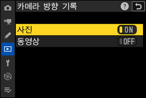 재생 메뉴의 사진 및 동영상에 별도의 “카메라 방향 기록” 설정 사용 가능