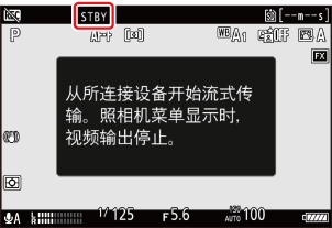 - 照相机将进入直播待机模式,在拍摄显示中将显示一条提示您开始直播的信息和一个u图标。